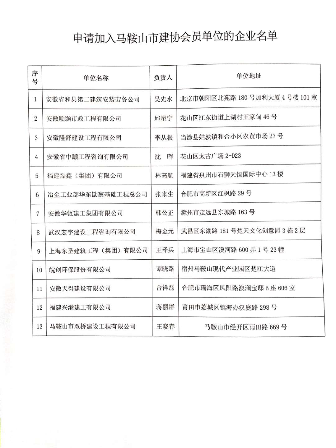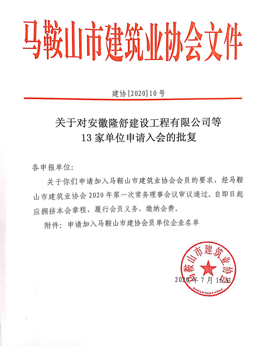 关于对安徽隆舒建设工程有限公司等13家单位申请入会的批复