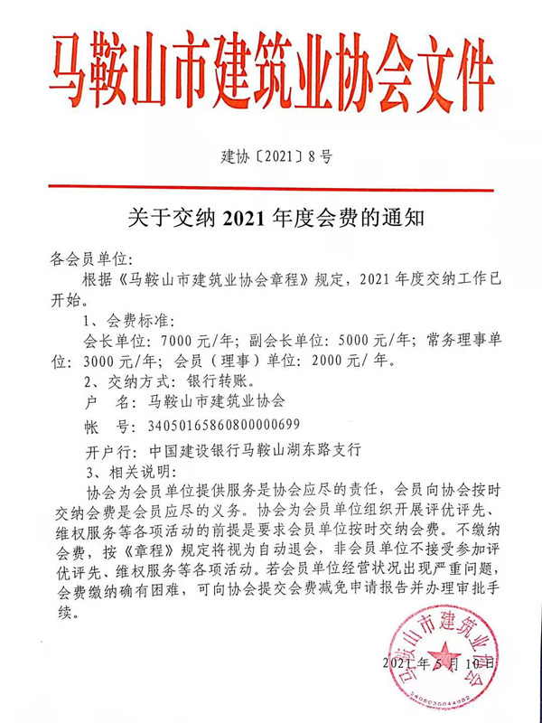 关于交纳2021年度会费的通知