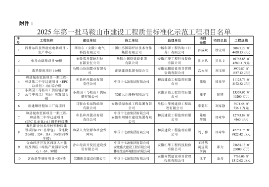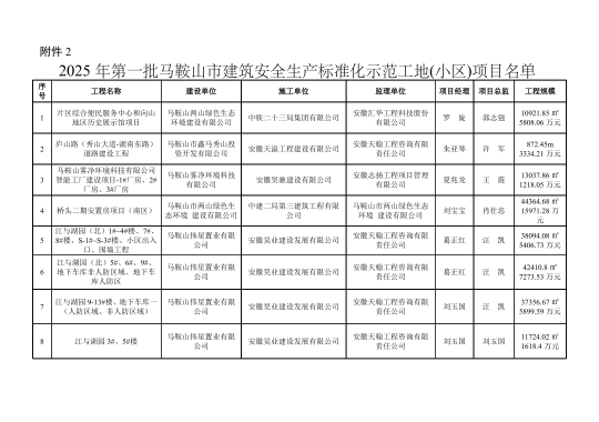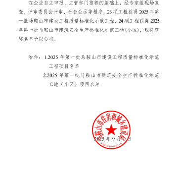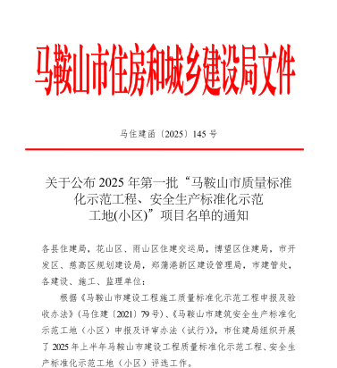 关于公布 2025 年第一批“马鞍山市质量标准化示范工程、安全生产标准化示范工地(小区)”项目名单的通知