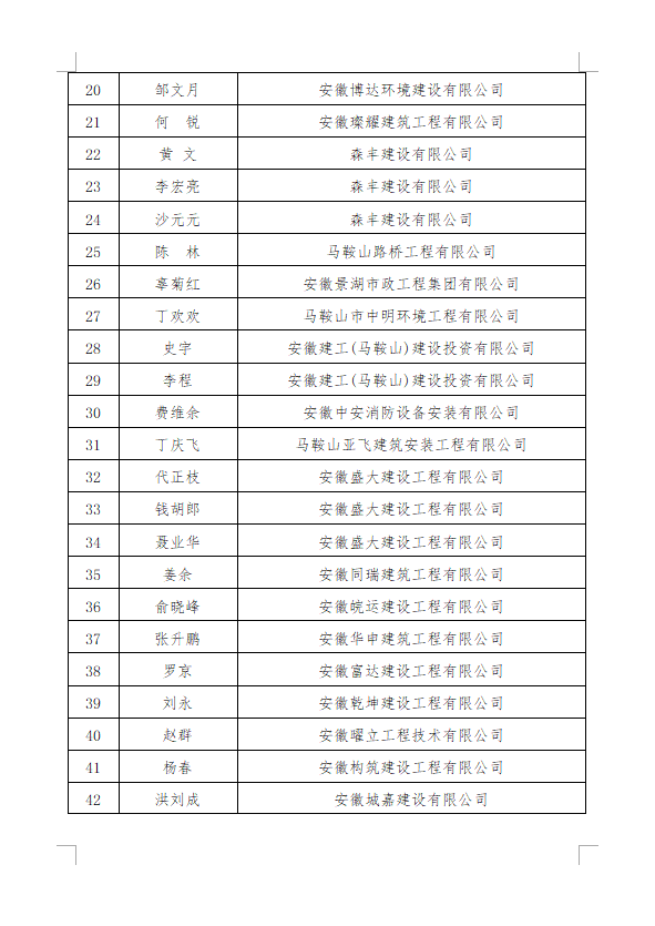 正式文件(可下载)——关于公布2025年度马鞍山市建筑业企业优秀 项目经理(建造师)名单的通知