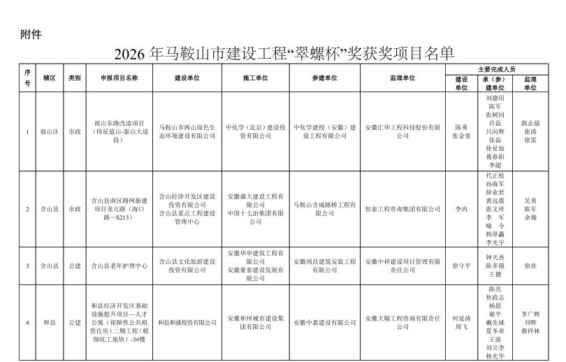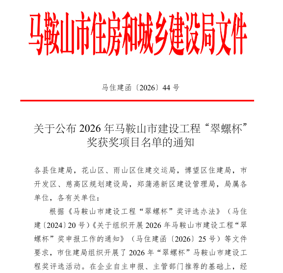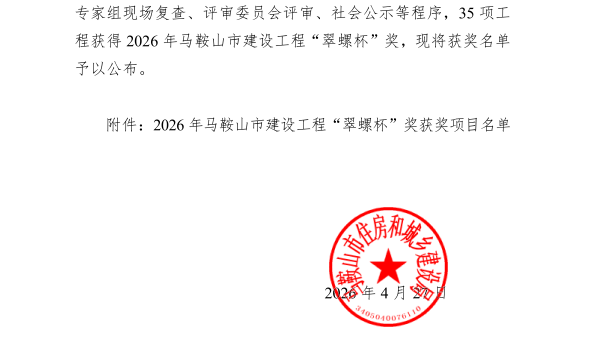关于公布2026年马鞍山市建设工程“翠螺杯"奖获奖项目名单的通知